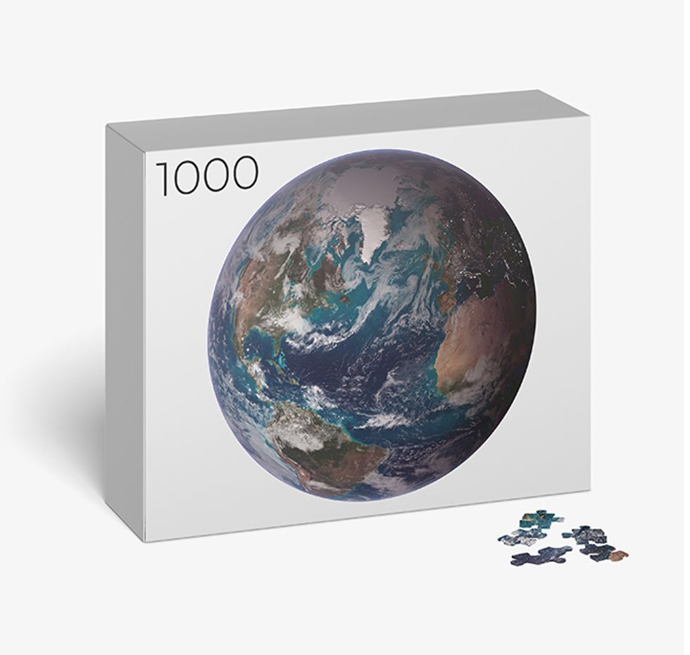 This 1,000 piece Planet Earth jigsaw "depicts night setting over the Atlantic from an altitude of 438 miles"... to be specific! "GetThere's nothing quite as beautiful as our Planet Earth...
