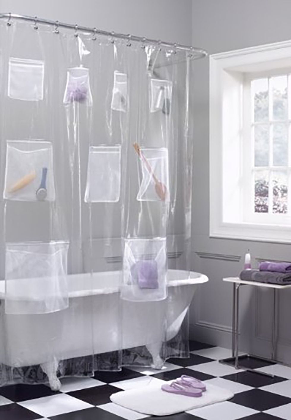 I need about four of these. Find them on AmazonThis Shower Curtain With Pockets That Maximizes Bathroom Storage
