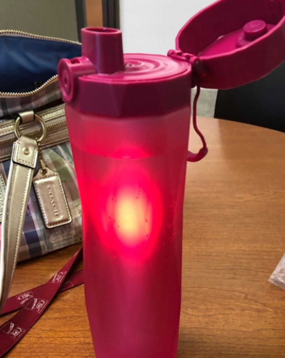 We could all hydrate more, and this water bottle, which glows when you need some H20, will help you do just that! How does it know when you need a sip? Magic! OK, not really. It syncs with your smartphone via Bluetooth and works with your fitness tracker app to adjust your water goal.
