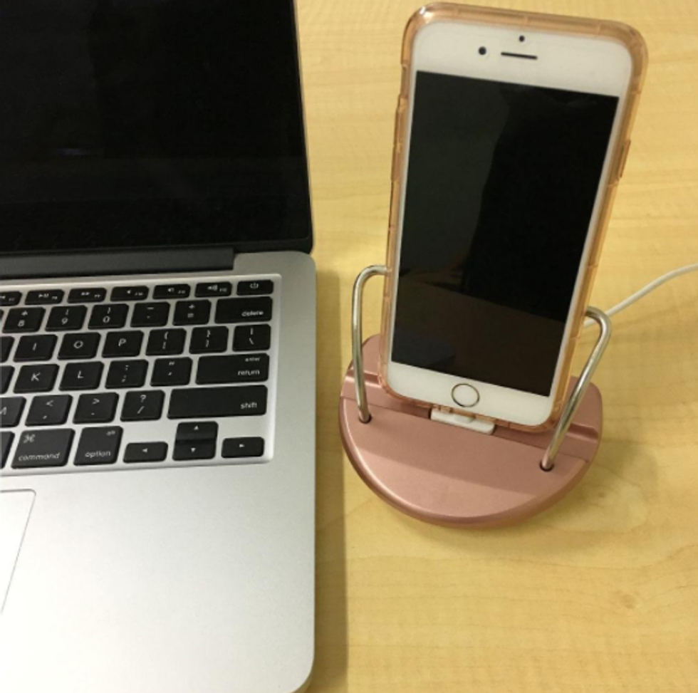 This slick phone stand will also charge that bad boy! With it, you don't have to constantly pick your phone up at work or worry about it dying on you.