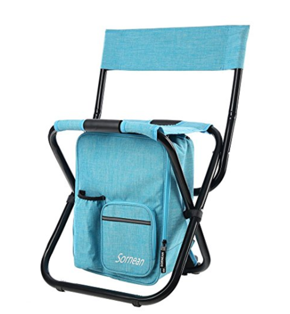 Sure, there are those folding chairs that have backpack straps, but they don't have an actual backpack attached, so you still have to carry another bag. This one does. Oh also, it comes with a cooler bag. This contraption has everything!