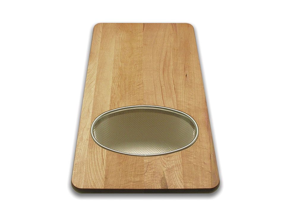 Now, this is truly a genius product. This cutting board is long enough to fit across most sinks, and it's got a built-in strainer. No more chopping broccoli then accidentally throwing it everywhere while trying to gather it in a colander. Your worries are over.