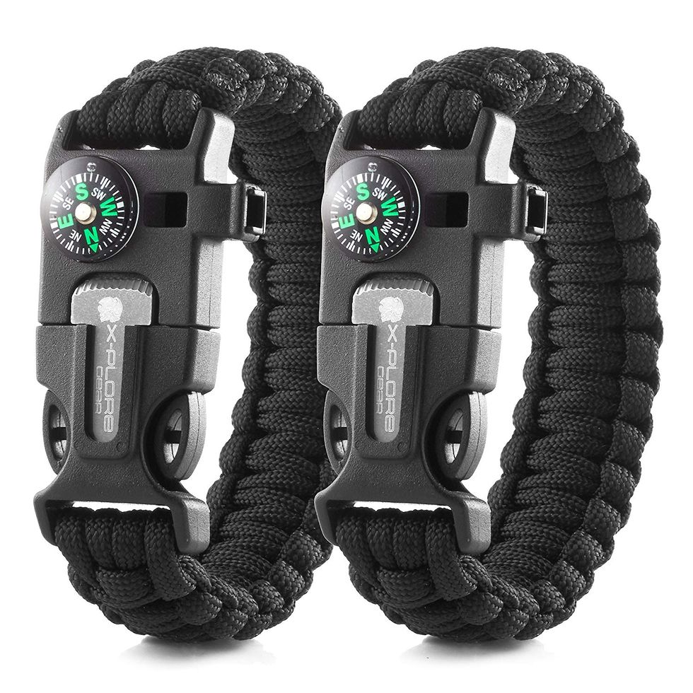 Whether you're going camping or not, it's probably a good idea to have a survival bracelet on you. This bracelet may be small, but it is mighty. It includes a whistle, a compass, a scraper, a firestarter, a knife, and potentially life-saving rope.