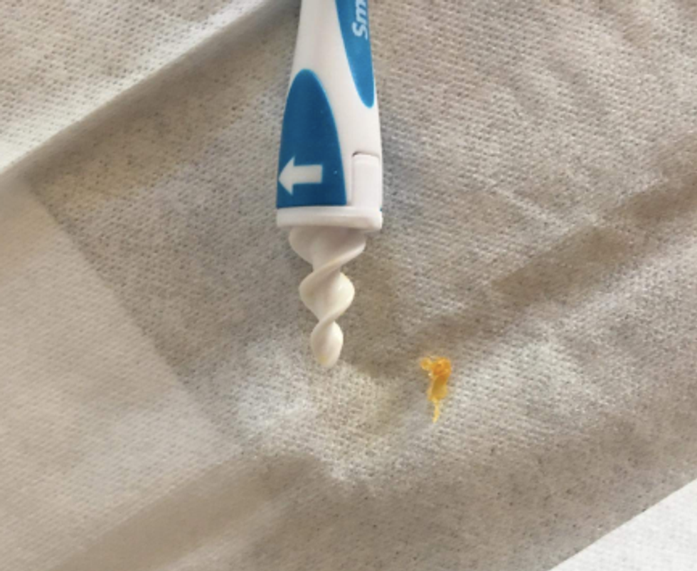 In case you couldn't tell, this is a before-and-after image of what it's like to use a tongue scraper. You can brush your teeth all you want (and you should!), but your tongue is actually a main source of bacteria that causes bad breath. Using your toothbrush on your tongue is a good start, but if you really wanna get that stinky gunk out of your mouth, you should opt for a tonge scraper like this one. With just a few scrapes, your tongue will be clean and your breath will be fresh!These Gel Heel Sleeves Will Transform Your Dry, Cracked Heels