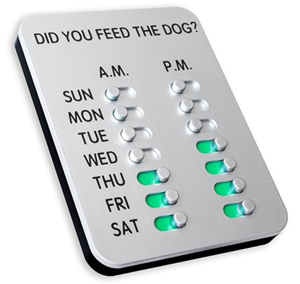 This clever Did You Feed the Dog? gadget eliminates the mystery. Mount it with the included adhesives or magnets, and simply slide the switches over. Because you can't rely on your dog to tell you the truth.This Mini Waffle Maker Makes More Than Just Waffles