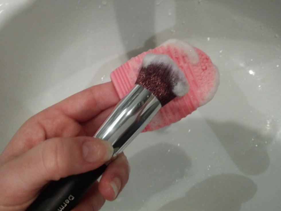 Simply squirt some soap on the pad and scrub your brush against the raised bumps. The added texture ensures a deeper clean.This Blending Sponge Has a Little Face!