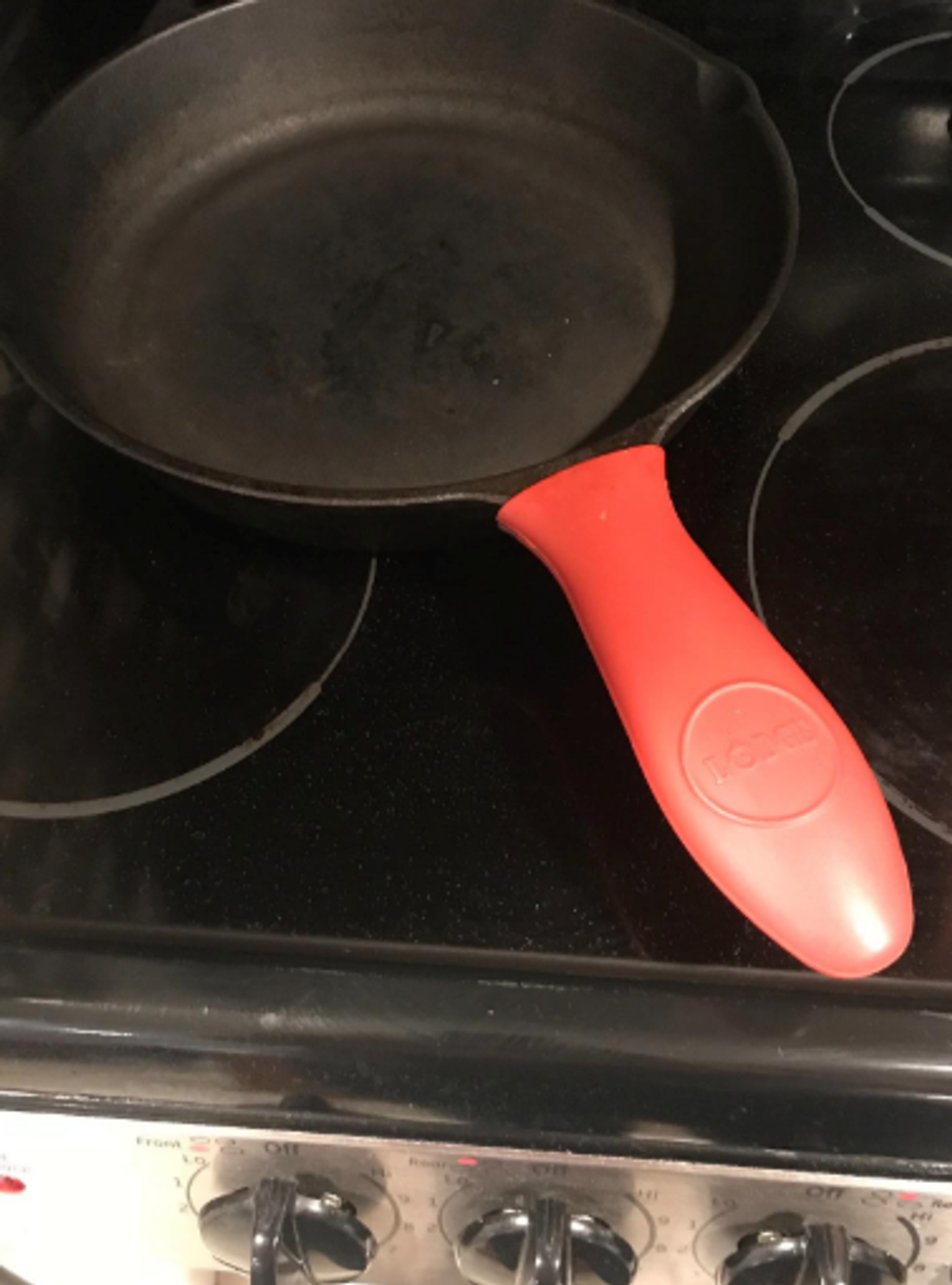 A silicone handle like this one makes it easy to move your skillet around on the stovetop without having to grab an oven mitt (or burn your hand).
