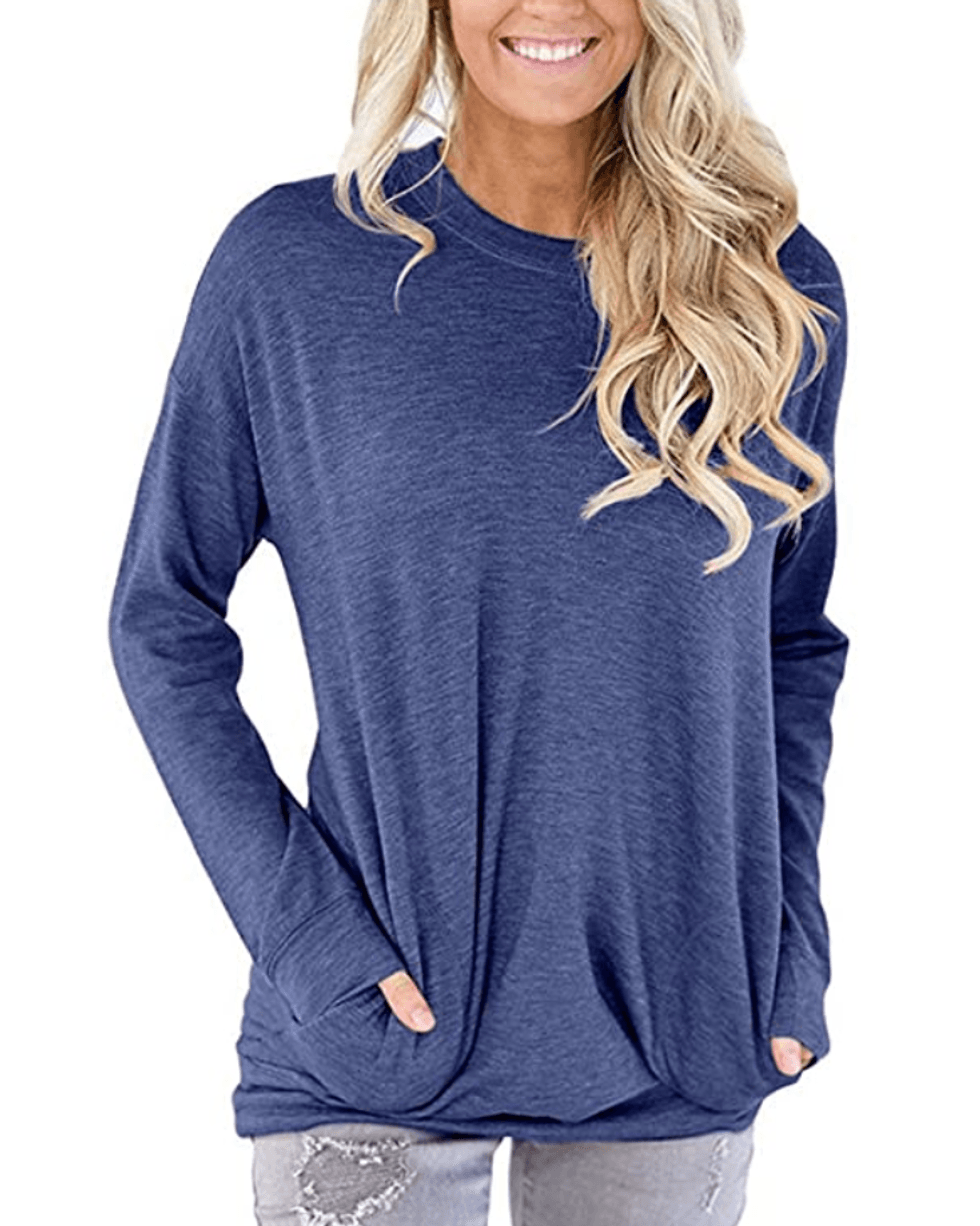 Not a fan of crop tops at the gym? No problem — just grab these tanks instead. They’re made from soft polyester that wicks away sweat as I exercise, and the racerback style shows off your colorful sports bra. View on AmazonThis Slouchy Long-Sleeve With Pockets
