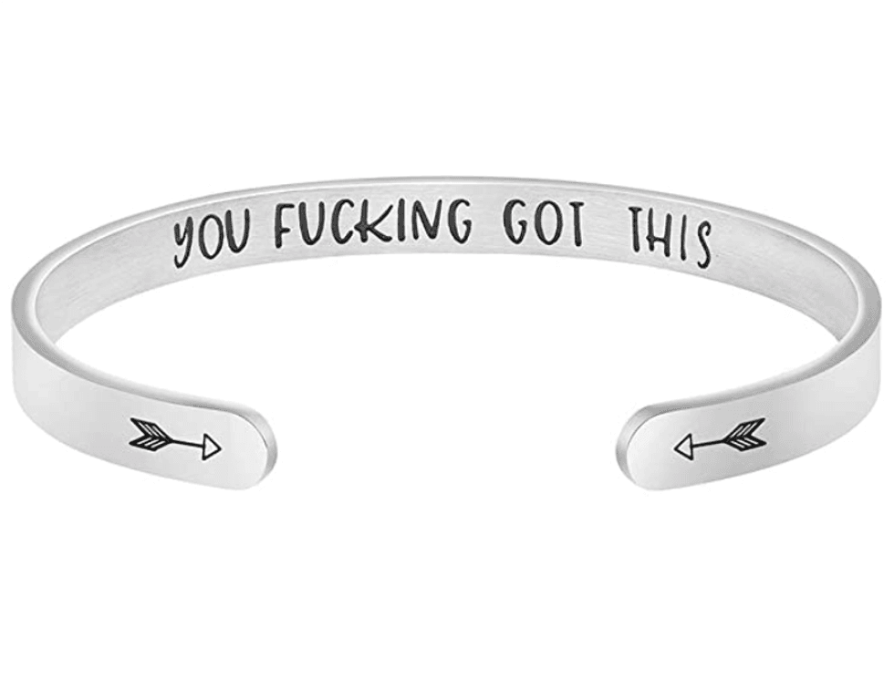 You can’t go wrong with this slouchy long sleeve, as it’s made from ultra-soft fabric that keeps you warm when temperatures dip low. It’s not so thick that it’ll keep you warm in the snow, mind you — but if you’re looking to layer your clothing in the fall, this shirt is a great base layer. View on AmazonA Motivational Bracelet To Keep You Going