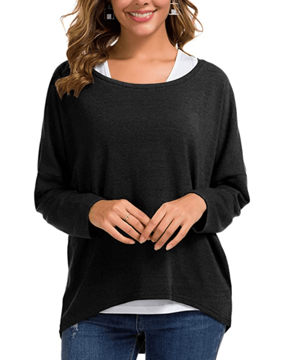 Soft, stretchy, and comfortable, this loose dress is perfect for work, picking pumpkins, or even a casual dinner date. I can wear it with or without leggings depending on the weather, and it hits just above my knee — not too short. Besides, can more than 5,000 Amazon reviewers be wrong? I think not! View on AmazonA Sweater You Can Layer Or Wear Alone