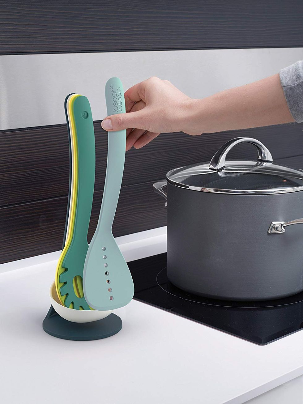 I don't know about you, but my cooking utensil drawer is always sort of a disaster. No matter how often I organize it, it eventually ends up being a jumbled mess and a spatula always manages to block the drawer from opening completely. The brilliance of this set of cooking utensils is in the handles — they're magnetic! The five different ultra-thin utensils stack together and stay together with the power of magnets, and honestly I'm just shocked I don't already have this.This Carafe Won't Drip All over Your Tablecloth