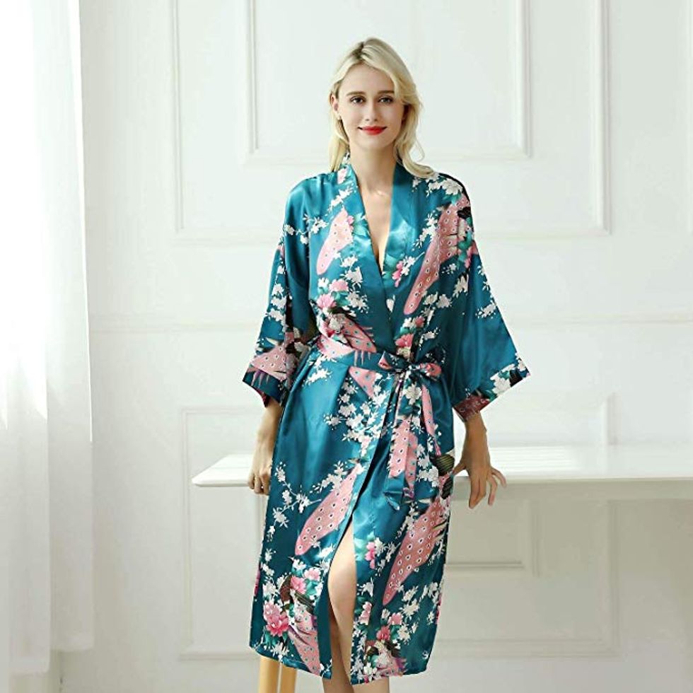 There's no reason why you have to wait to be a bridesmaid in a wedding to get your very own satin kimono. This one costs less than 20 bucks and is hella stylish. It's available in several different colors, too. I love the 3/4 length sleeves — long enough to give you some coverage, but they won't end up in your mug of coffee. This robe can also be machine washed. Bonus!This Table Lamp Looks Way Pricier Than It Is
