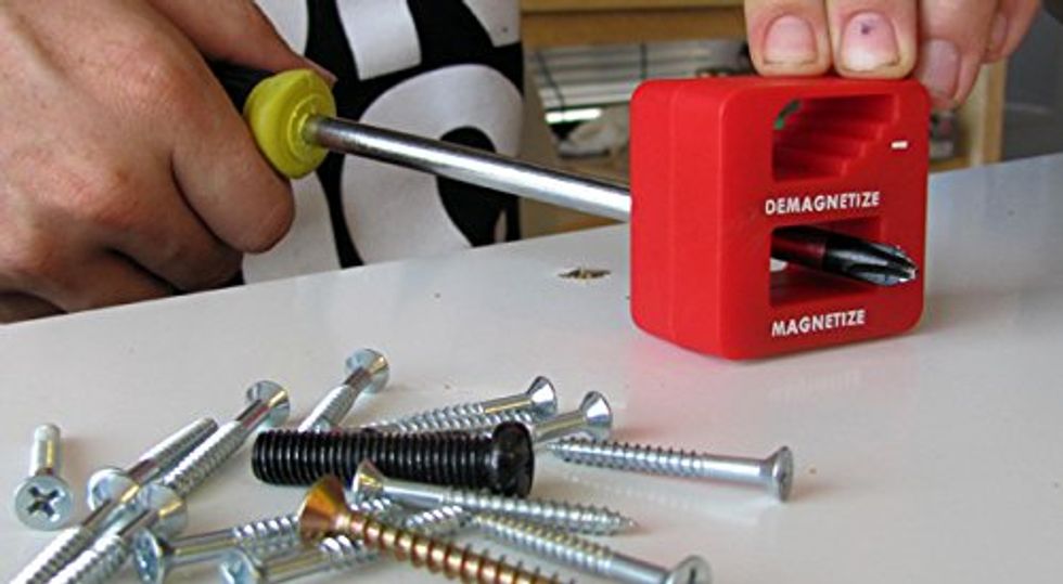 Sometimes you have unmagnetized objects that you wish were magnetized. Other times, you might have magnetic objects that you wish you could demagnetize. This little device lets you do both! Run your screwdriver (or even separate screws) through the magnetizing chamber to give them a magnetic charge — this is great for when you don't want to drop a screw onto whatever you're working on. If you want to eliminate the magnetization, simply run your tool through the demagnetizing chamber! This little device is much handier than you might think. Every household should probably have one.This Magnetic Hourglass Is Classy AF