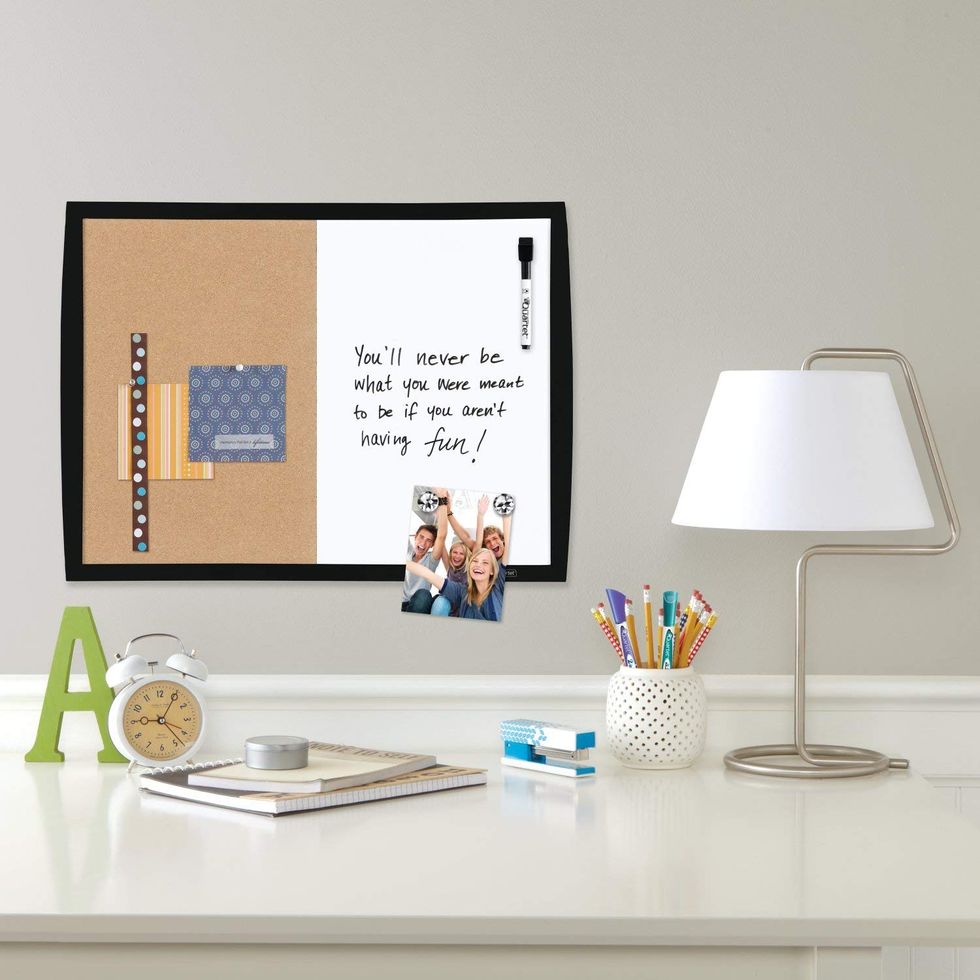 If you don't have a desk to work at (or just don't feel like sitting at your desk alllll the time), a lap desk is a great option. Use it to hold your computer, notebooks, or other work right on your lap. That way, you can take advantage of your comfy couch or favorite chair but still feel super productive. This one has a removable pad for comfort and a built-in handle for easy portability. It's available in several different colors, too.This Dry Erase/Cork Board Is Two Useful Tools in One!