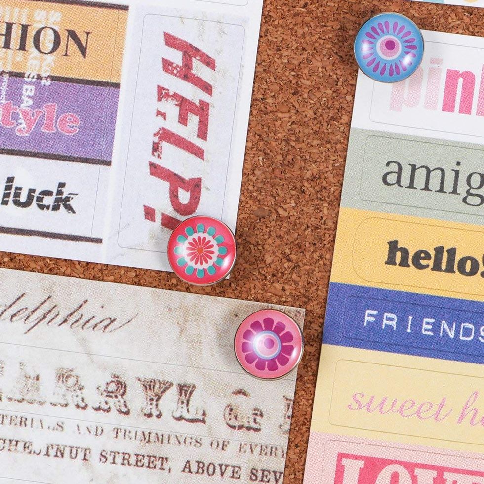 This style of correction tape is way easier to use than the old school paint-on stuff. Simply drag it across the error and wait a few seconds for it to dry. Then, you can write on it and carry on with your life. This listing is for a pack of four tape dispensers, so you can keep one at home, one at work, and maybe even put one in your car! The translucent dispenser allows you to see how much correction tape is left so you don't have to worry about running out.These Cute Thumbtacks Will Make Your Cork Board Look Pretty