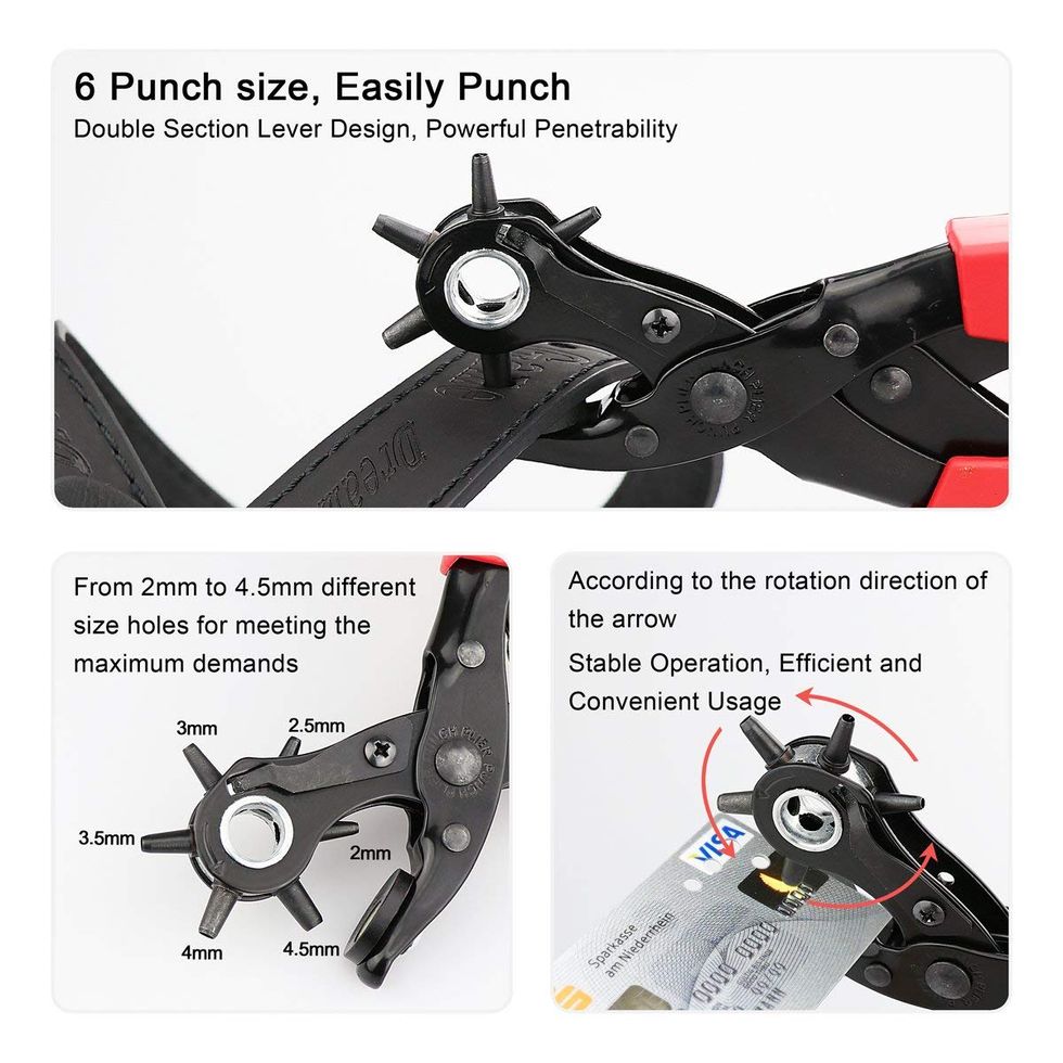Thousands of reviewers tout the powers of these bags of activated charcoal, specifically highlighting their abilities to freshen truly nasty old shoes or even drink up the odorrific remnants of spoiled milk inside a minivan. These are totally natural, using bamboo charcoal to absorb and remove all that stinky stuff from the air. You can reuse these for up to two years, just place the bags outside for an hour once a month to rejuvenate.This Leather Hole Punch