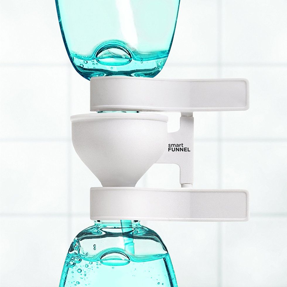 If you're the kind of person who regularly drains the remains of one bottle into the new bottle, then you're going to want to pay attention to this one. Whether it's ketchup, soap, or lotion, right now you carefully balance the old bottle on top of the skinny neck of the new, and then you slowly back away and hope no rogue air currents knock down your thrifty configuration. The Smart Funnel lets you laugh at air currents. It clips the top bottle onto the bottom one, so the two remain securely attached until the draining is complete.This Folding Potato Masher Allows You to Mash Potatoes AND Open Your Kitchen Drawers