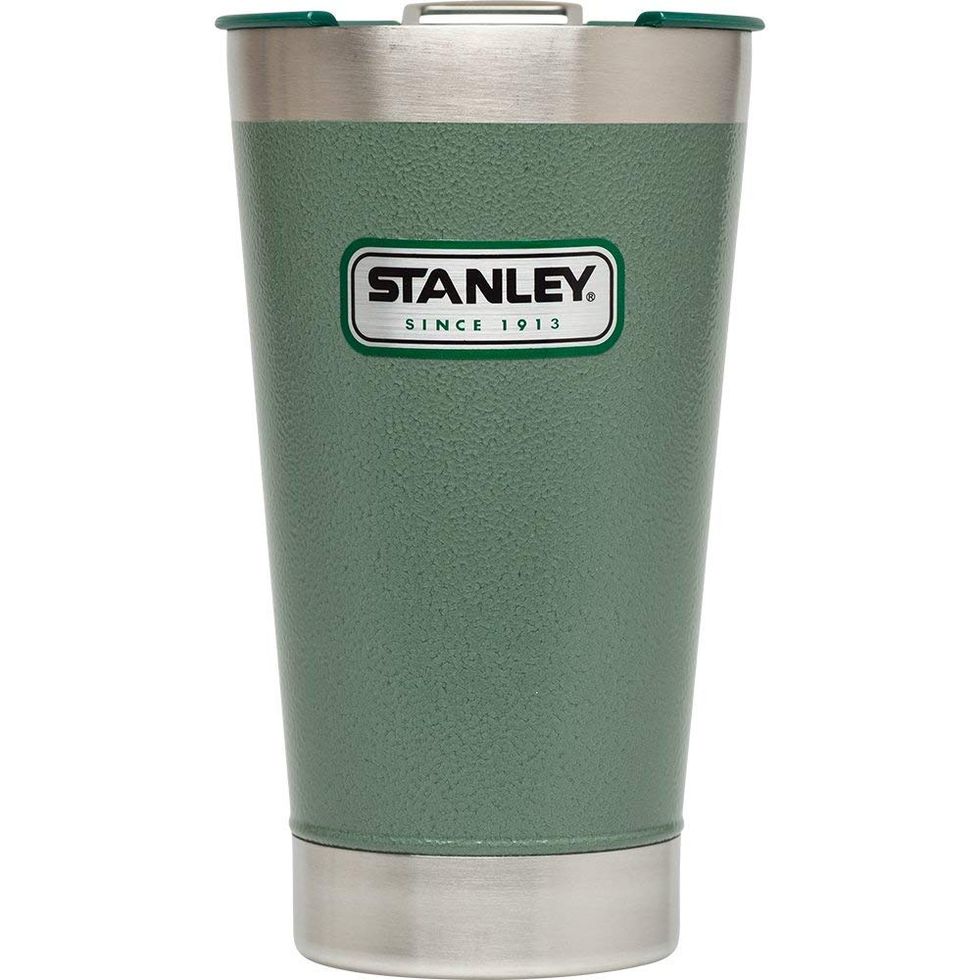 Stanley makes really durable tumblers that will last you a lifetime. Oh, and don't you worry: The lid comes with a built-in bottle opener, so when you are out camping, you don't have to worry about packing a separate one. I personally love this Hammertone Green color, but if it's not for you, this 16 oz. tumbler also comes in crimson, navy, and matte black.