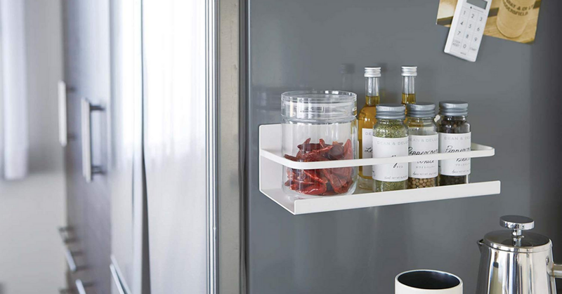 Keep your most used (or all your) spices close by with this magnetic rack. This is a safe space; there’s no spice shaming. The minimalist design looks great in any kitchen and all you need is a metal surface to set it up. The rack holds about 3 pounds of spices and extracts which is more than you think!This Shower Curtain Lock Saves Your Walls