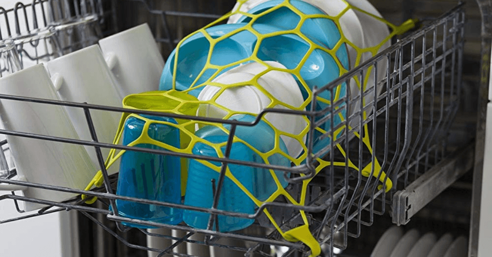 This Stretchy Silicone Dishwasher Net Adapts to Any Shape