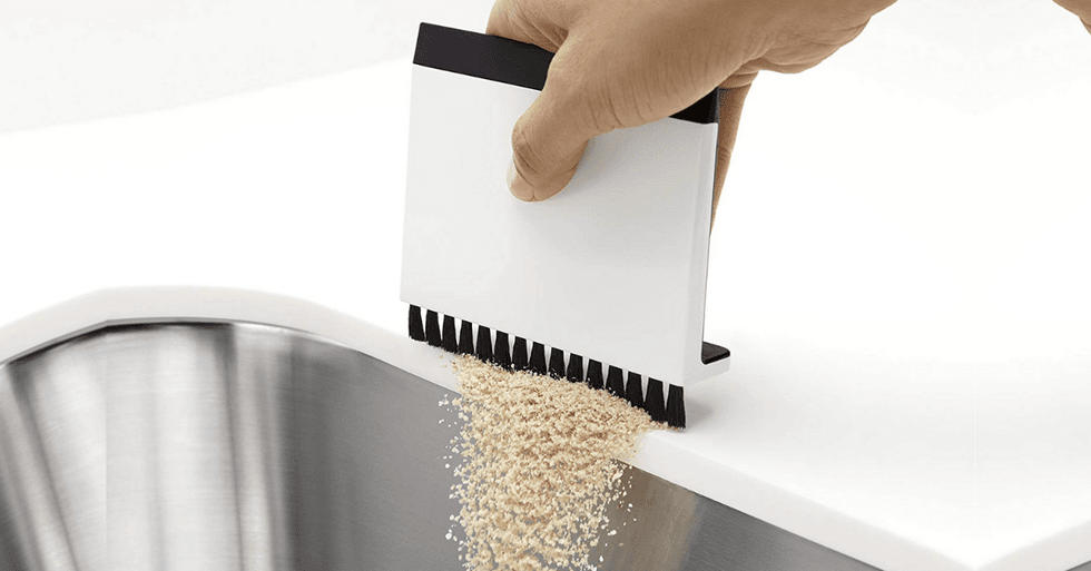 No matter how well I think I’ve cleaned the counters, I always find little bits littering the surface from the million spills that happen everyday. This little sink squeegee and counter brush tool sweeps crumbs into the sink and scrapes dried messes off the stove or sink in a snap. It has a built-in handle so you can hang it on the edge of the counter or sink which is nice for those of us who constantly misplace things!
