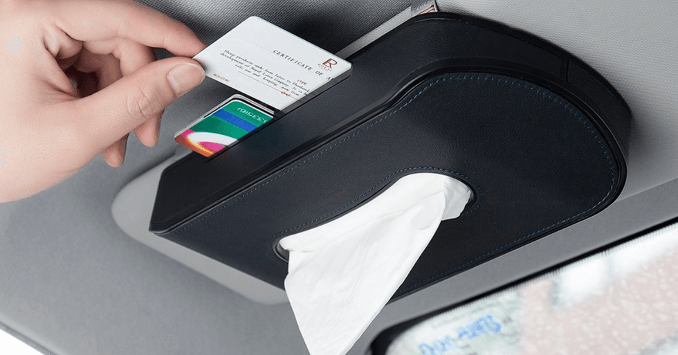 Whether it’s allergy season or cold and flu season, someone in the car always needs a tissue. The tubes of tissues that fit in your cup holder work pretty well, but they take up valuable caffeine-holder space and not every store carries them. This stylish leather car tissue holder attaches easily to your visor, dashboard or seat back so tissues are always in reach and you don’t have to take your eyes off the road to hunt one down.