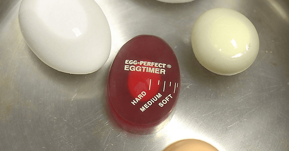 Whenever I cook, I like to limit the number of dishes I’m going to have to wash (or load into the dishwasher). The Clever Tongs seem to have been designed with someone just like me in mind, as they’re essentially two tools in one! You can use them as tongs to grab individual items or implement the spatula-like component to scoop a bunch of stuff at once. They’re non-stick, heat resistant, and dishwasher safe. Plus, this listing is for two pairs — one large and one small.This Perfect Egg Timer
