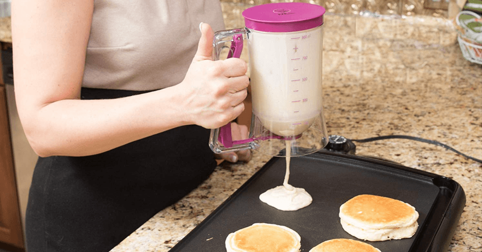 Homemade cupcakes, pancakes, waffles, muffins and crepes are so delicious but sometimes not worth the mess it makes of your kitchen. Simply mix ingredients directly in this 4-cup batter dispenser, then pull the handle to cleanly dispense exactly the right amount of batter. No messy ladles or drippy counters, and you’ll get perfectly sized pancakes and cupcakes that cook evenly. It’s so easy to use even kids can do it by themselves!