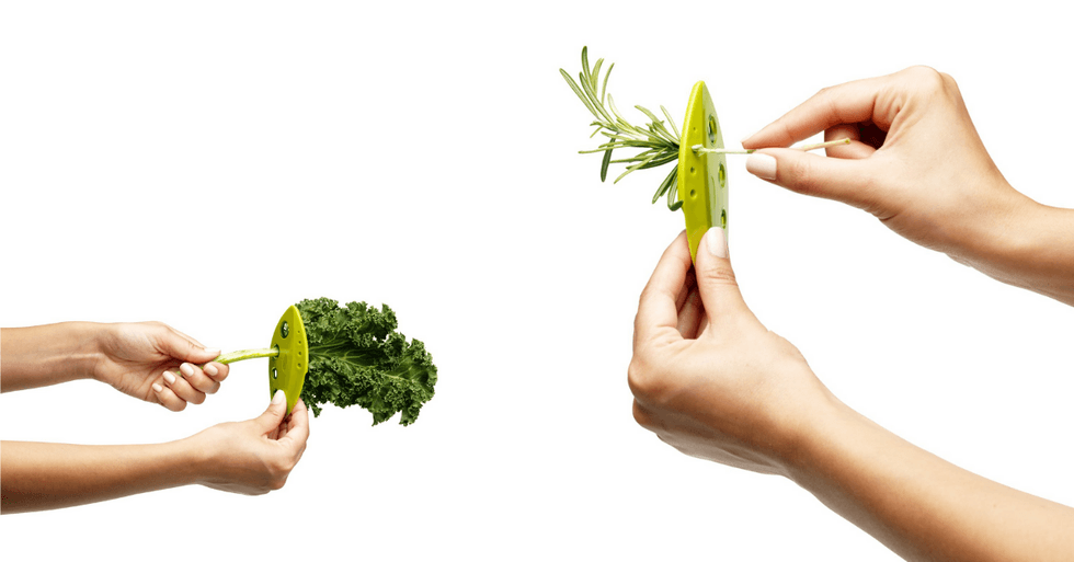 This aptly designed leaf stripper looks just like a leaf. One side can strip your larger greens like kale and chard in one swift motion. The other side has smaller holes for your herbs for quick additions of some fresh rosemary.These No-Tie Shoelaces Make Any Shoe A Slip-On