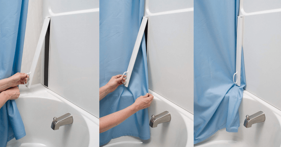 Keep your most used (or all your) spices close by with this magnetic rack. This is a safe space; there’s no spice shaming. The minimalist design looks great in any kitchen and all you need is a metal surface to set it up. The rack holds about 3 pounds of spices and extracts which is more than you think!This Shower Curtain Lock Saves Your Walls
