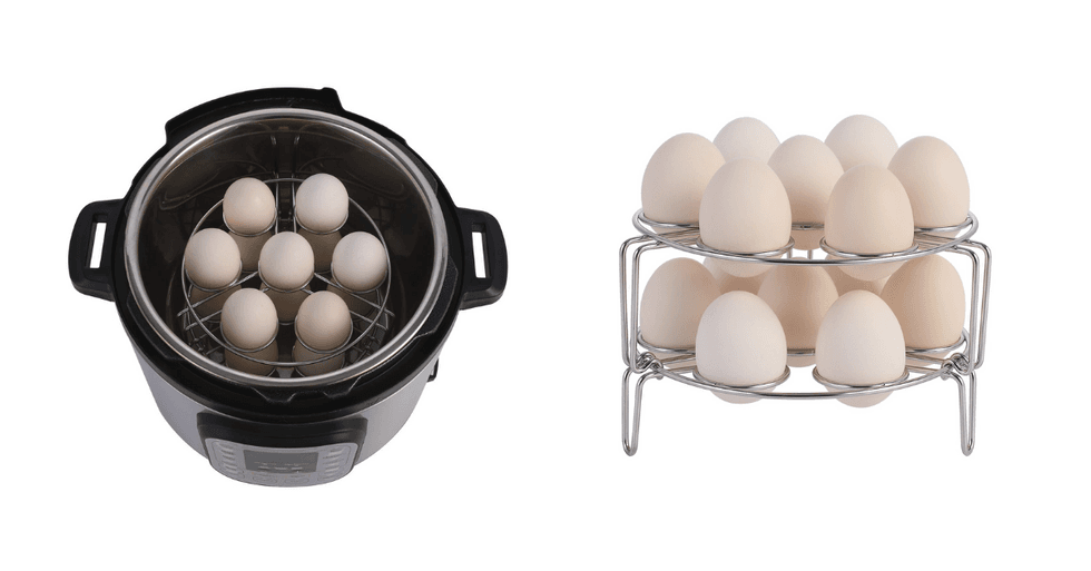 A few times a week, my husband piles a bunch of eggs into the Instant Pot so we have healthy snacks to grab on the go. Unfortunately sometimes the eggs on top of the pile aren’t fully cooked while the ones on the bottom are perfect. This Instant Pot steamer trivet solves that problem since it keeps the eggs separated so each one is evenly cooked.