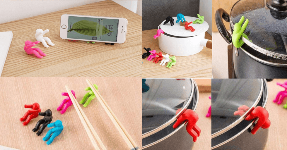 As you can see, they're the ideal tool for propping up a lid to keep liquids from boiling over. They can also be used to prop up your cell phone or tablet, or hold your chopsticks when you're not using them. Also, they just look hilarious and I kinda want to buy a hundred of them just to have them around. This listing is for a pair of 'em, and they cost less than a buck apiece!This Spoon Transforms into a Ladle