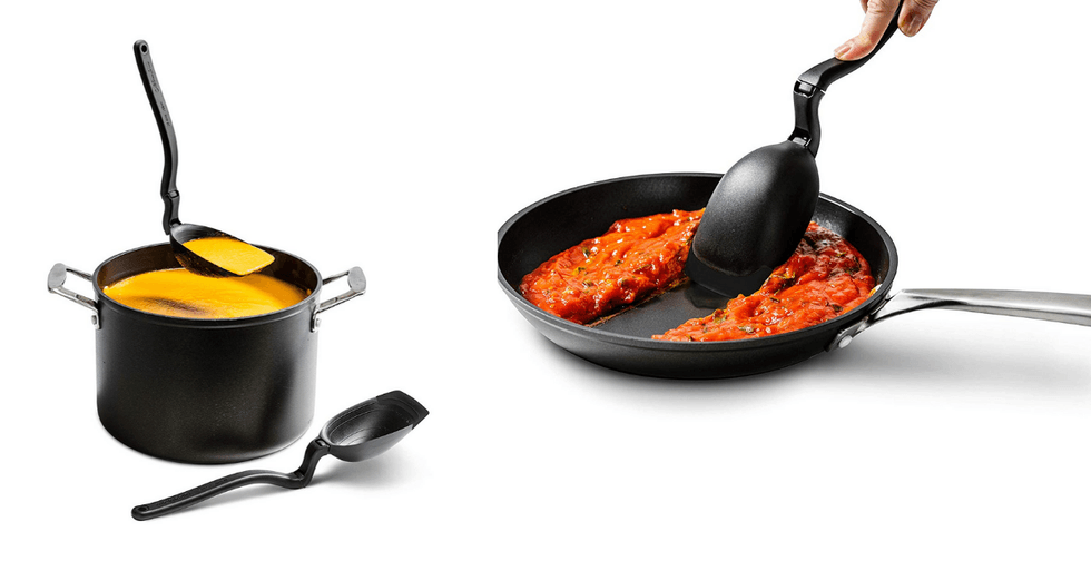 This cooking utensil is a bit of an overachiever. At first, it seems like an unassuming scraping spoon, but then you notice the measuring lines in the bowl (up to a ½ cup). The edge of the spoon is like a squeegee for more scraping power. The bent handle allows you to rest it on a counter without making a mess and twists to turn the spoon into a ladle.This Dog Water Bottle Keeps Pets Happy and Healthy