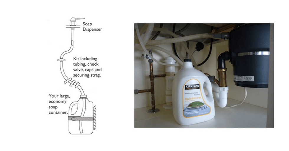We all do it: buy a large container of dishwashing soap and pour it into the little container attached to that handy pump by the sink. We pour carefully, ready to stop the moment it's full, but invariably it overflows, and then overflows again when we put the pump part back in. It's a mess and we need to refill it fairly often. Instead, some genius invented this Never-MT Soap Dispenser Kit. (Get it? Never MT, M-T, like empty?) Now you can hook up your sink-side pump directly to the large container of soap you bought!Keep Your Sneakers Looking (and Smelling) Like New With a Sneaker Wash and Dry Bag