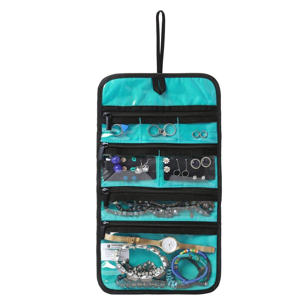 I tend to keep my jewelry in a plastic baggie whenever I travel, and I always regret it. I end up spending more time detangling necklaces than I thought was even possible. This travel pouch provides several separate zippered pockets for your jewelry and rolls up so it can easily fit in your suitcase. There's also a little loop you can use to hang the holder up once you get to your destination. Pretty genius!Trending