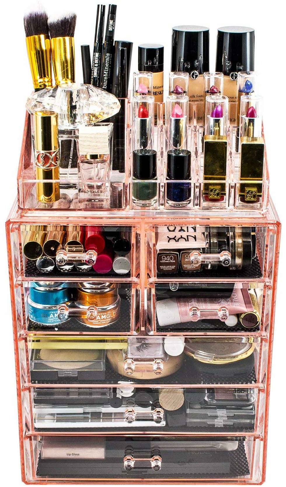 You can use it for makeup! You can use it for jewelry! You can use it for tiny little notes you leave yourself! You can use it for anything. The point is that this storage case is practical, good-looking, and perfect. I love that you can see through it, so you do not have to dig around for that one eye pencil you always store in a different place. If pink isn't your jam, it comes in five other colors: black, bronze, clear, marble print, and purple.This Door Stopper