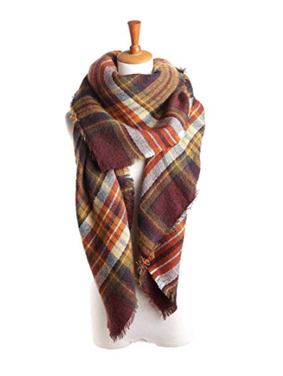 You are going to notice a pattern in this list. I have a thing for two animals: elephants and bears. I have reasons and they are personal. This little wooden elephant phone and pen holder is retro and adorable, and I just want it. I think it will look perfect at the desk I have that I don't actually work at because I prefer to sit on my couch with my puppy instead.This Oversized Plaid Scarf