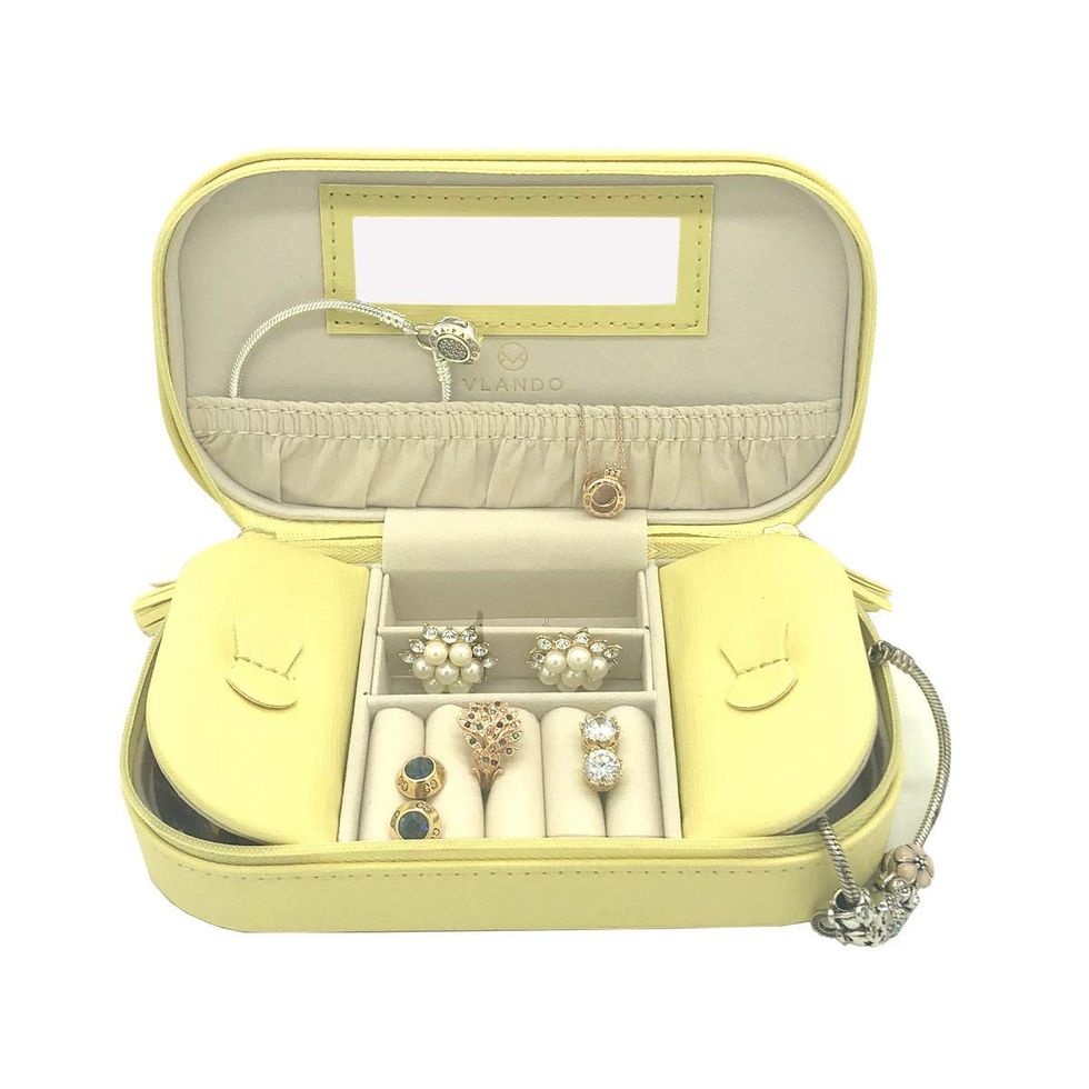 I do a fair amount of traveling, but I have not figured out a good way to transport jewelry yet. I usually put everything in a little plastic baggie and resign myself to the fact that I'll have to spend a few minutes untangling every necklace before putting it on. This little box sure would save me a lot of time. It has places for rings, earrings, and necklaces, and also features a little mirror in case you need it.This Storage Bin Is Made from Woven Paper
