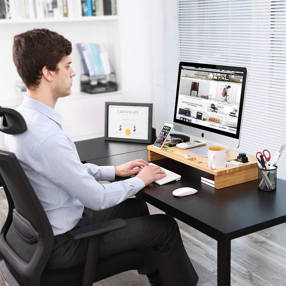 Chances are you have a laptop monitor setup. That seems pretty common these days. What you need is this monitor riser made out of bamboo, can support up to 80 lbs. and comes complete with slots and compartments for your cell phone, pens and pencils, your coffee mug, and other office supplies. It's also raised, which means it creates a little shelf under which you can store your notebooks or your keyboard and mouse.These Jumbo Paper Clips