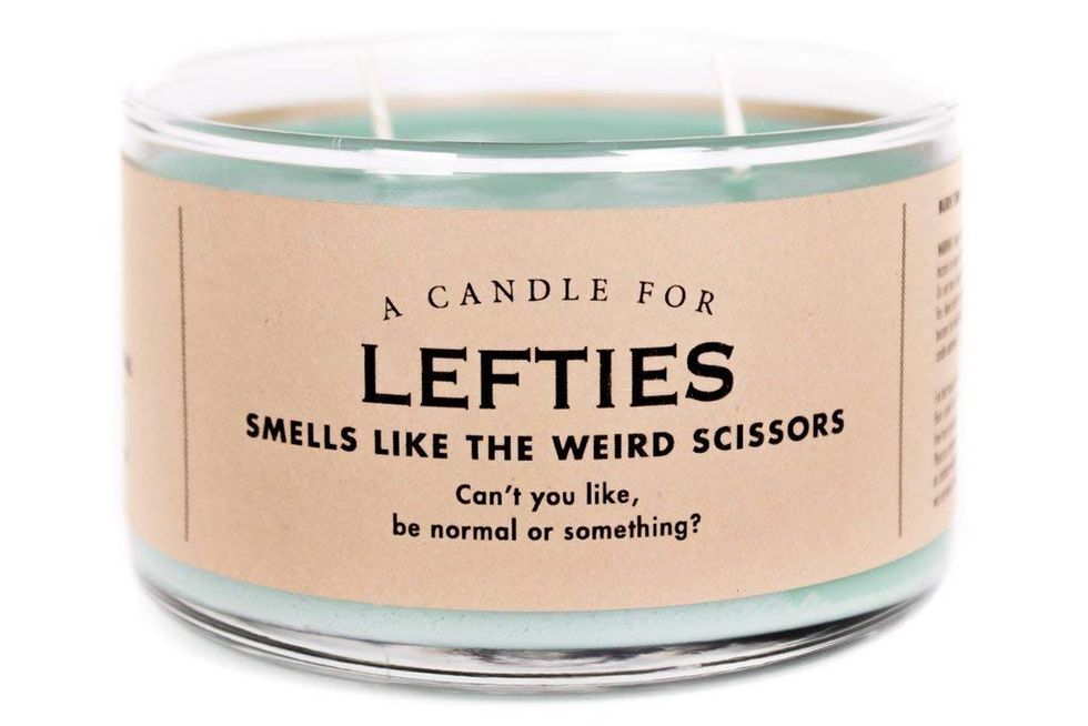 I think you definitely know someone who wants a praying mantis finger puppet, but they just might not know it yet. It seems like a prank gift, but it's really a gift that goes a long way. Maybe you know someone who is genuinely into puppeteering and putting on shows, which would be great. But maybe you have a friend who just likes putting bugs in people's beds and scaring the crap out of them. Either way, this is perfect.This Candle for Lefties