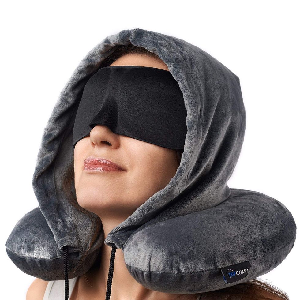 Knee socks are just great, and even though socks are a pretty traditional holiday gift, these are definitely not traditional. They make you look like you have chicken legs while also keeping you comfy and warm! They will go with pretty much any outfit, but you do get bonus points if you wear these with a feathery dress. I'm telling you, chicken leg socks are where it's at.This Travel Pillow with a Built-In Hood
