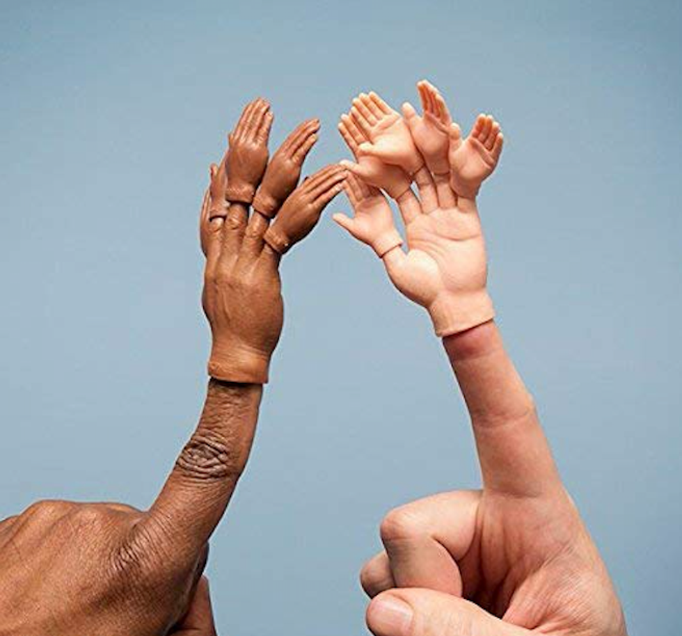 I can't say for sure exactly why you need a set of miniature hands to go on your fingers, but you totally do. Maybe you have a desperate desire to give someone a high-twenty-five! Maybe you want to ask your teacher five questions but only want to raise your hand once. Maybe you're cosplaying as Thing (from The Addams Family) and his four siblings. I don't know your life.