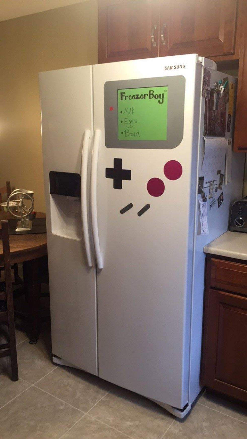 (Or you can put 'em on your wall, dishwasher, washing machine — pretty much wherever). The "screen" also works as a dry-erase board where you can write your grocery list, leave notes for your roommates, or draw pictures. Unfortunately, you can't play Pokémon on it. But you can pretend to! The decals themselves are magnetic so they're easily removable and won't leave any residue or scuff marks.