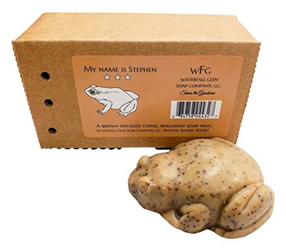 I guess there's nothing too terribly weird about frog-shaped soap — soap comes in all kinds of shapes! I just love that this one is named Stephen. You could carry him around in your pocket and talk to him all day. Then, when someone asks you what you're doing, you can say, "Just talking to my frog, Stephen." Plus you can use him to wash your hands if you're ever stranded in a public restroom without any soap. Stephen has many uses.