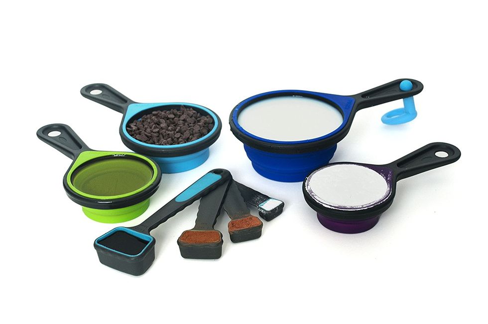 Use these squishy squares as pot holders, trivets, or use them to help you open jars! This set of four pads can be used in many ways and you definitely need them.These Collapsible Measuring Cups and Spoons