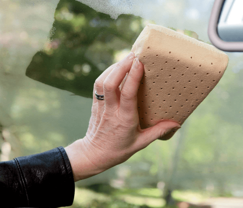Some inventions just make a whole lot of sense. Rather than trying to grab all the leaves from a pile with a rake and one hand, put these giant shovels onto your hands and grab a whole pile at once! Admit it: You want to wear these and pretend you're a leaf-grabbing dinosaur. I don't blame you. I totally do, too.This DeFogger Sponge Does Exactly What It Says It Does