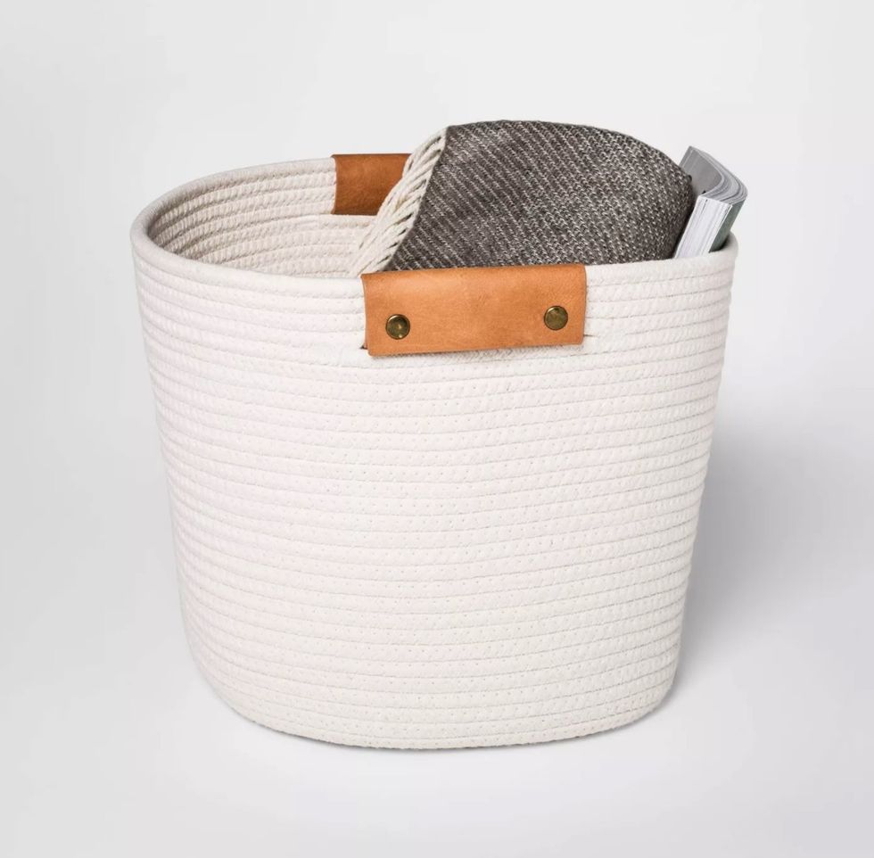 I aspire to have Instagram-worthy cabinets and countertops, where even my storage solutions look fabulous. This coiled rope basket is a step in that direction! It measures 11 by 14 inches and is woven from off-white cotton thread with faux leather handles. It's received over 100 reviews on Target.com so far, with an impressive 100% of reviewers saying they would recommend it to other shoppers! Scrolling through the customer photos, it looks like most people are using this basket in bathrooms, on bookshelves, and to contain pet cats.This Cozy Jumpsuit for Hanging Out at Home