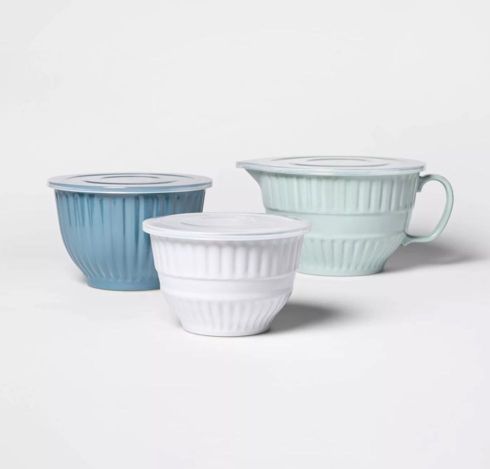 Most of my cooking equipment is on the utilitarian end of the spectrum: lots of boring glass and metal. That's why I have my eye on this mixing bowl set made from pretty pastel melamine that's lightweight, dishwasher safe, and perfect for prepping and serving. The set includes 4-quart, 3-quart, and 1.8-quart mixing bowls with plastic lids. The largest bowl also has a handle and spout, making it handy for pouring batter.This Moon Cycle Kids T-Shirt Glows in the Dark