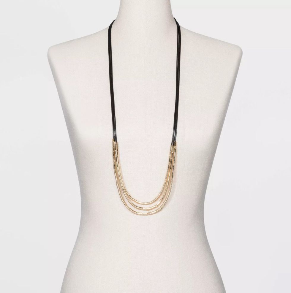 I'm a big fan of affordable, versatile accessories like this long beaded necklace I just found at Target.com. It's made of three long cords (choose from black, coral, or teal) layered with shiny gold beads. The effect is dressy without being fussy, and would look fabulous with a t-shirt or maxi-dress this summer.These Incandescent String Lights for a Warm, Festive Glow