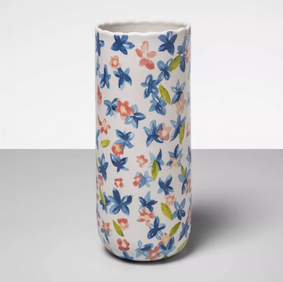 Can you ever have too many vases? Maybe. But I still want this stoneware vase that's painted with a light and colorful floral design. It's so pretty that it looks great on its own, even if it's not holding any flowers! But add a few long stems--fresh or dried--for an especially beautiful addition to your room.This Straw Tote Bag for Effortless Summer Style